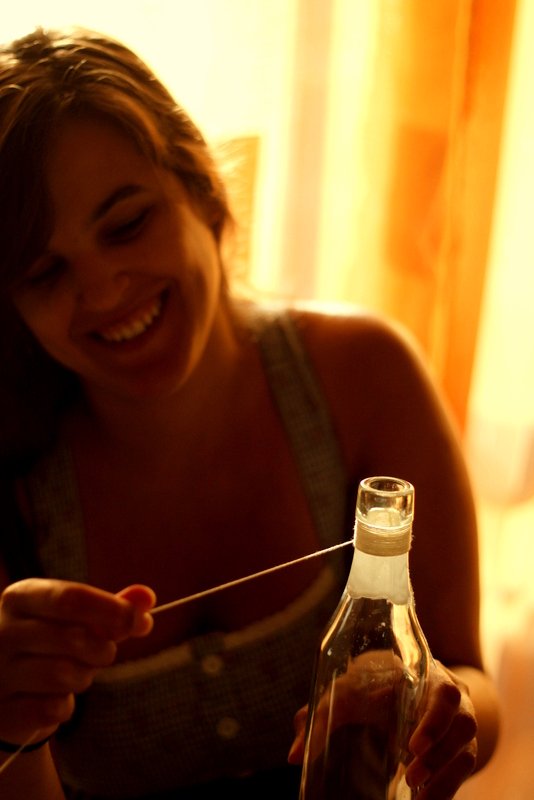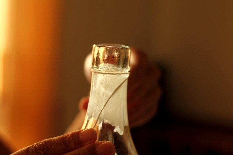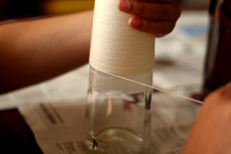 Nota: Aperte bem a linha para não ficar nenhuma falha ao longo da garrafa, isto acontece mais se a garrafa for muito direita.