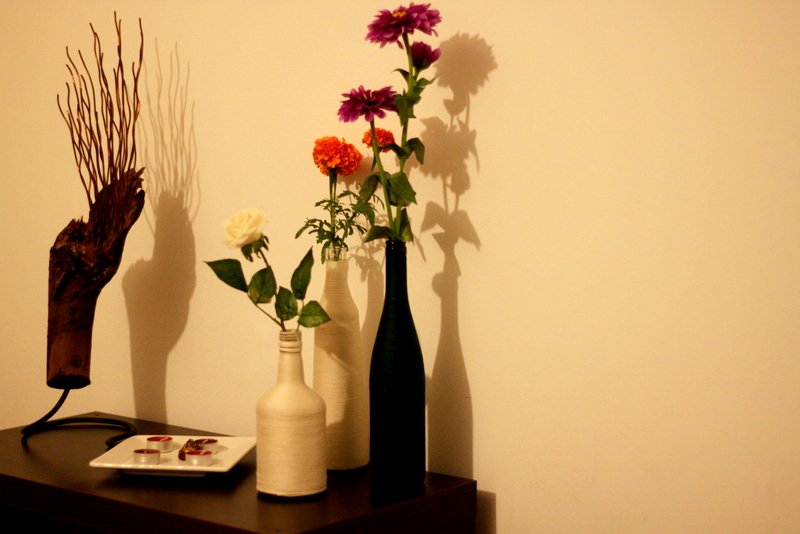 Gosto muito de decoração feita com reciclagem e de projecto simples que sejam acessíveis a todos. As jarras feitas de garrafas de vidro são muito fáceis de fazer e tem várias opções, pode pintá-las, decorá-las, ou até mesmo deixá-las simples.