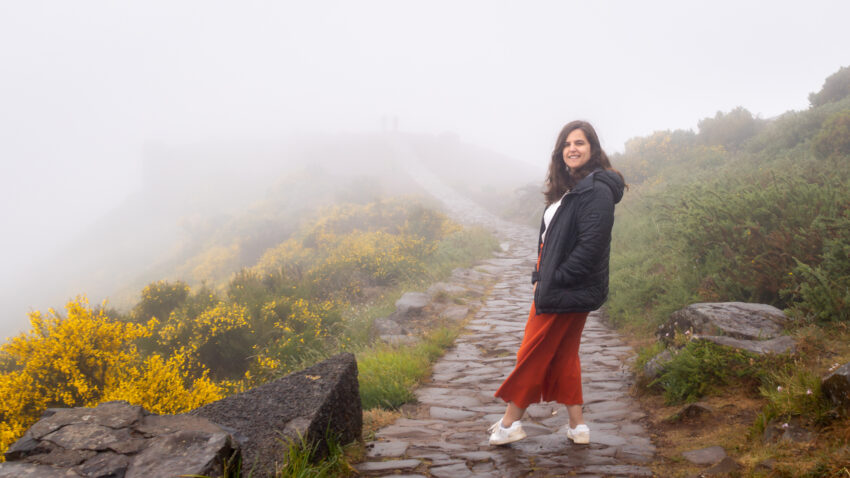 A ideia era seguir depois para o Pico do Areeiro, um dos pontos mais altos da ilha, mas o tempo não ajudou: vento, frio e nevoeiro taparam completamente a vista. Mesmo assim, a subida valeu pela experiência e pelo contraste com o clima mais quente da costa.